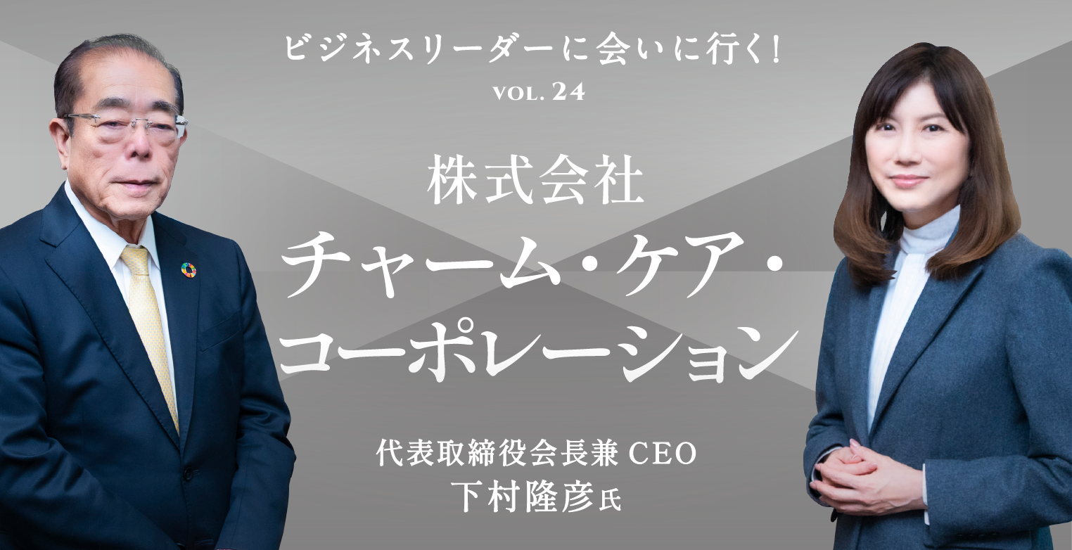 各業界のトップと対談を通して企業経営を強くし、時代を勝ち抜くヒントをお伝えする連載「ビジネスリーダーに会いに行く!」。第24回は、有料老人ホームを手掛けるチャーム・ケア・コーポレーションの下村隆彦代表取締役会長兼CEOです。60歳のときに「自分の人生、何か足りない」とお考えになって、そこから介護事業に乗り出したバイタリティーに驚きました。信条が、ご自身でつくった「一生青春、生涯挑戦」とお聞きし、年齢に関係なく事業を起こされる姿勢に学びました。