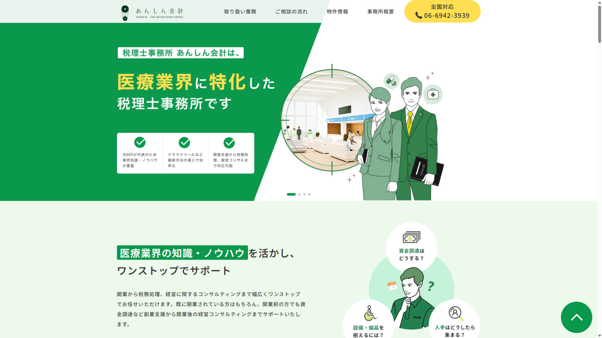 特に、開業支援・医療・建設・相続・消費税還付・クラウド会計など、専門的なサポート体制が整っているのが特長です。