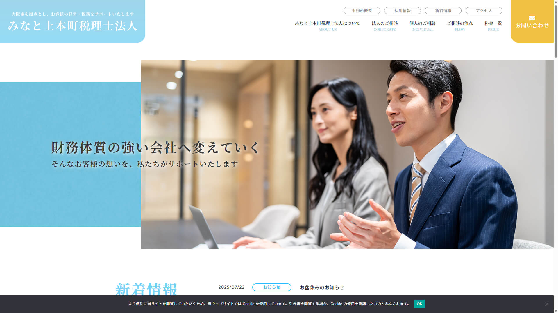 「親しみやすさ・わかりやすさ・スピード」をモットーに、中小企業から個人事業主まで幅広い業種・業態に対応しています。